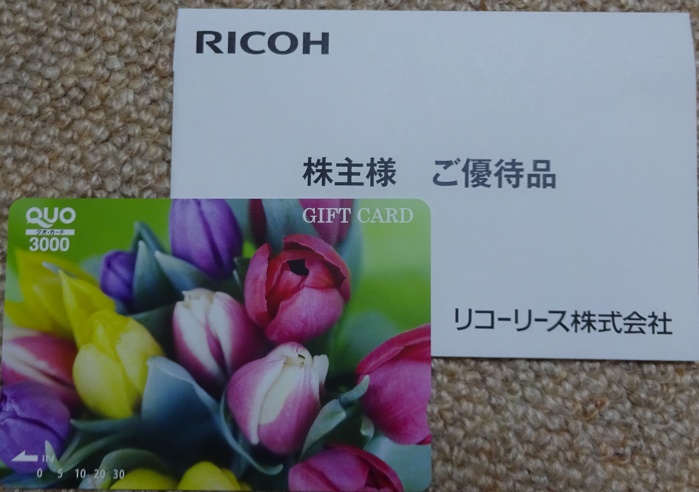 リコーリース(8566)の株主優待はクオカードになります。