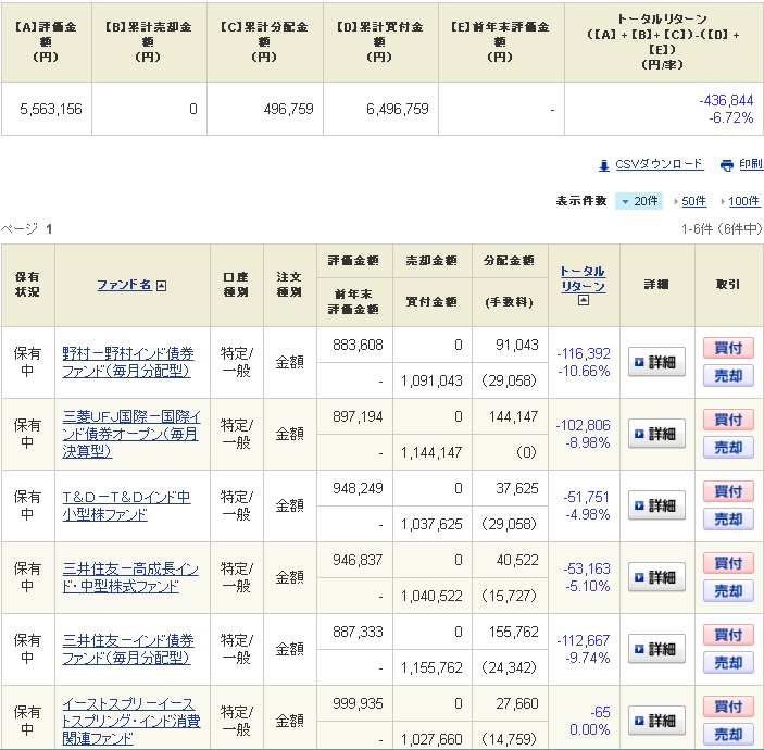 以前紹介したインドの投資信託の中から中小型のファンドを3本と債券型のファンドを3本の計6本を各100万円分購入しております。