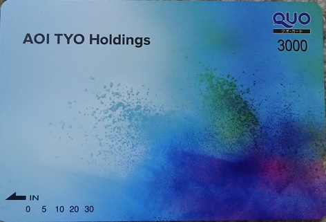 AOITYOHoldings(3975)の株主優待が届きました 2018.09.172019.01.21 AOITYOHoldings(3975)の株主優待はクオカードになります。 手数料無料でクロス取引で購入しました。 権利確定月:6月末日 500株で3000円分のクオカードを頂きました。