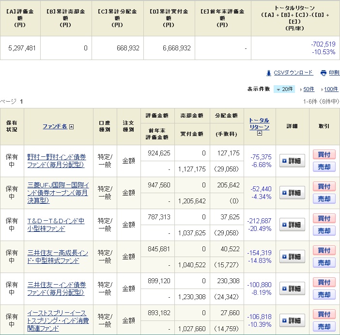 以前紹介したインドの投資信託の中から中小型のファンドを3本と債券型のファンドを3本の計6本を各100万円分購入しております。