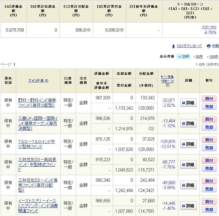 以前紹介したインドの投資信託の中から中小型のファンドを3本と債券型のファンドを3本の計6本を各100万円分購入しております。