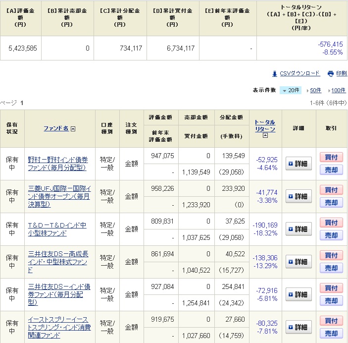 以前紹介したインドの投資信託の中から中小型のファンドを3本と債券型のファンドを3本の計6本を各100万円分購入しております。