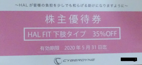 | 1000株以上 | HAL FIT 下肢タイプ10回分優待券(20%OFF) |