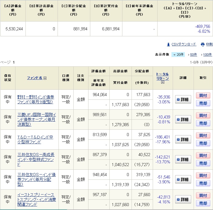 以前紹介したインドの投資信託の中から中小型のファンドを3本と債券型のファンドを3本の計6本を各100万円分購入しております。