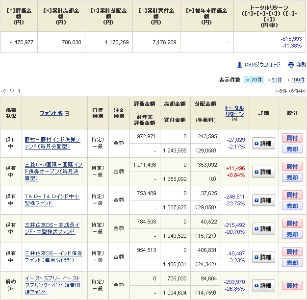 以前紹介したインドの投資信託の中から中小型のファンドを3本と債券型のファンドを3本の計6本を各100万円分購入しております。