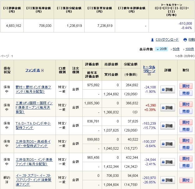以前紹介したインドの投資信託の中から中小型のファンドを3本と債券型のファンドを3本の計6本を各100万円分購入しております。