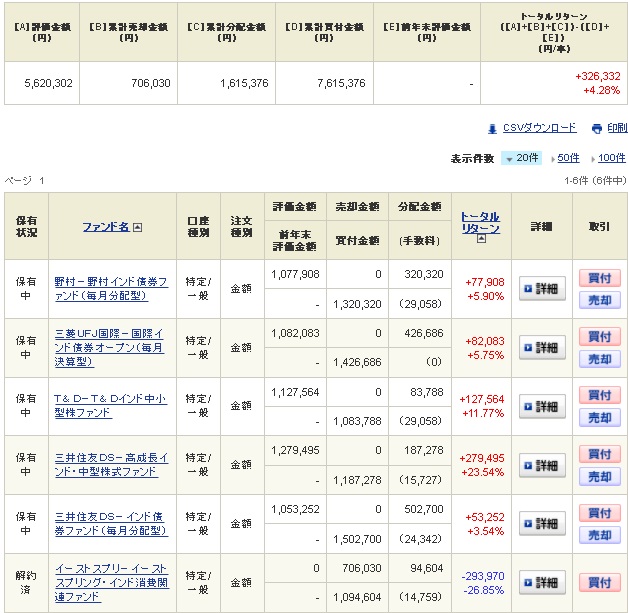 以前紹介したインドの投資信託の中から中小型のファンドを3本と債券型のファンドを3本の計6本を各100万円分購入しております。