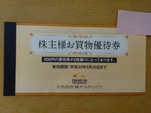 5月が権利月です。クロス取引で300株の権利を得て4000円分のお買物優待券を頂きました。