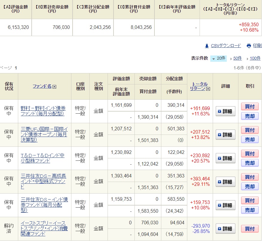 以前紹介したインドの投資信託の中から中小型のファンドを3本と債券型のファンドを3本の計6本を各100万円分購入しております。