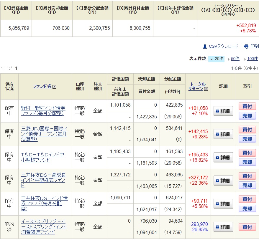 以前紹介したインドの投資信託の中から中小型のファンドを3本と債券型のファンドを3本の計6本を各100万円分購入しております。
