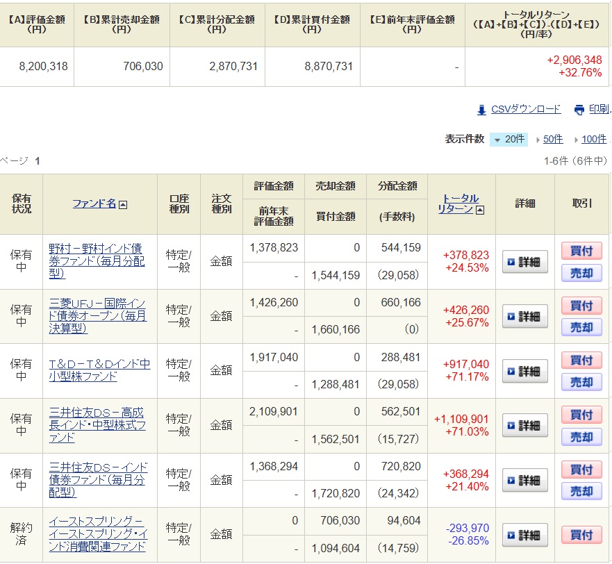 以前紹介したインドの投資信託の中から中小型のファンドを3本と債券型のファンドを3本の計6本を各100万円分購入しております。