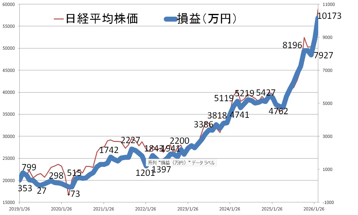 累計損益は +1億173万円(2026年2月末時点) となりました。